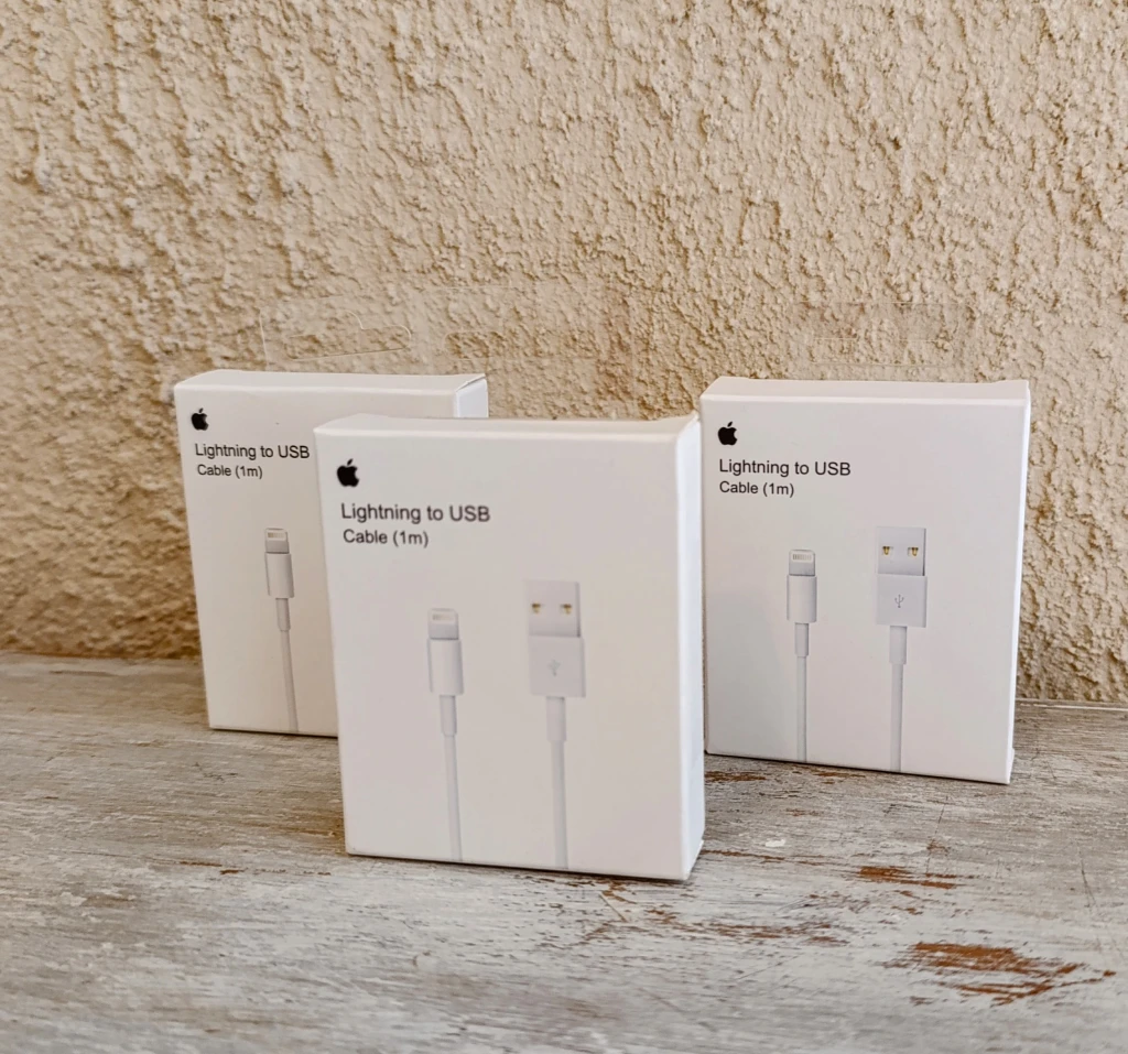 Diseño: Cuenta con un conector Lightning reversible de 8 pines y un conector USB-A.