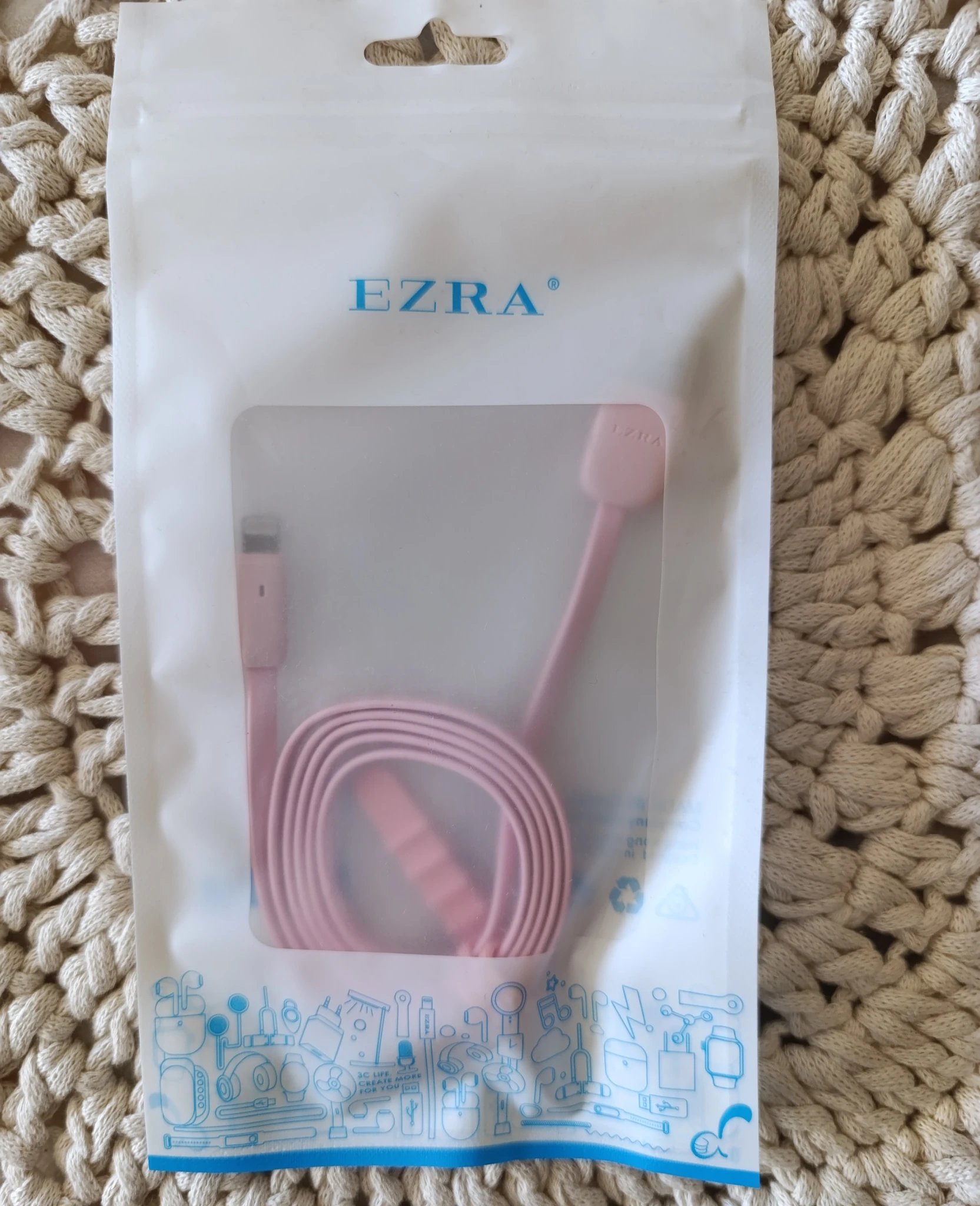 Cable USB lightning Ezra 12WCarga Rápida Mallado de Color rosa