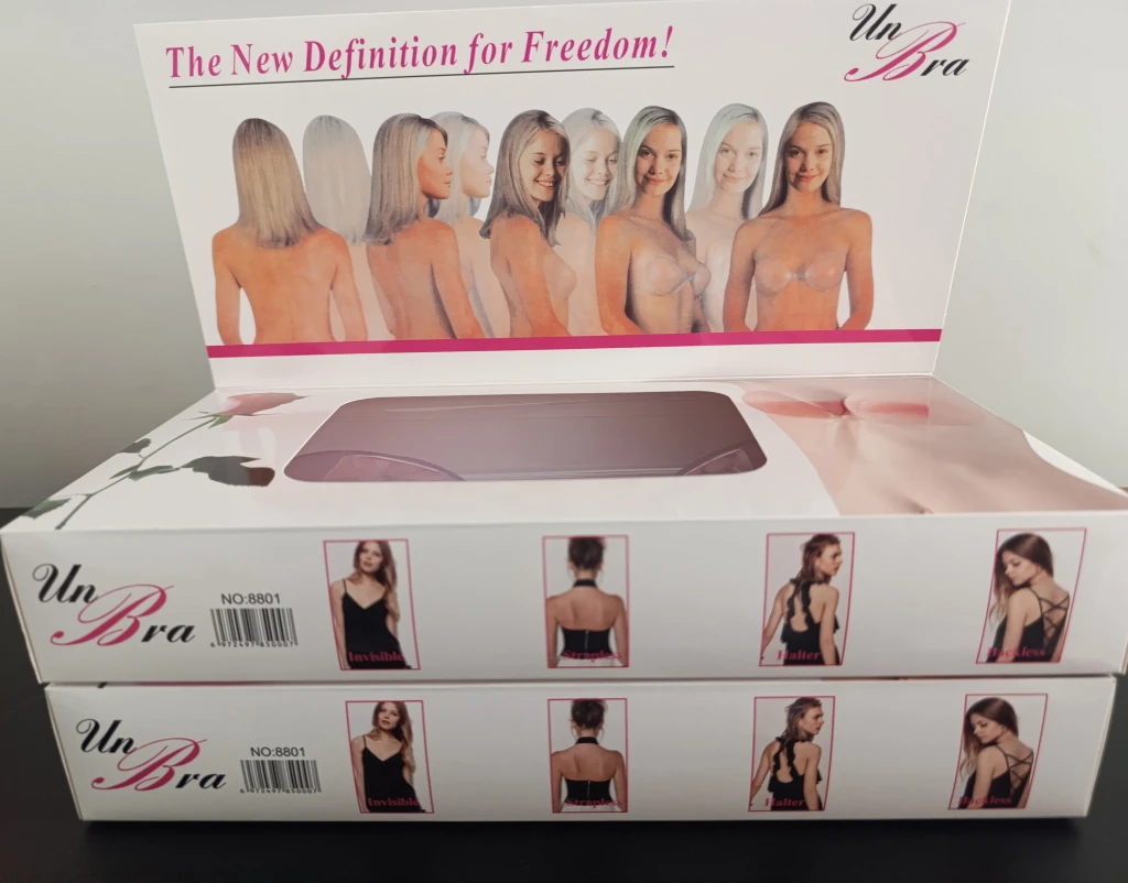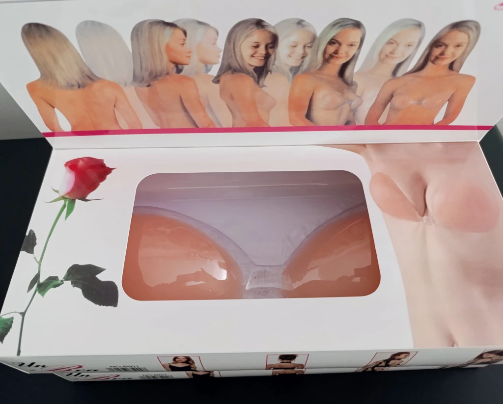 Copas de sujetador de silicona con adhesivo en el interior de las copas, más cierre frontal para escote y realce.