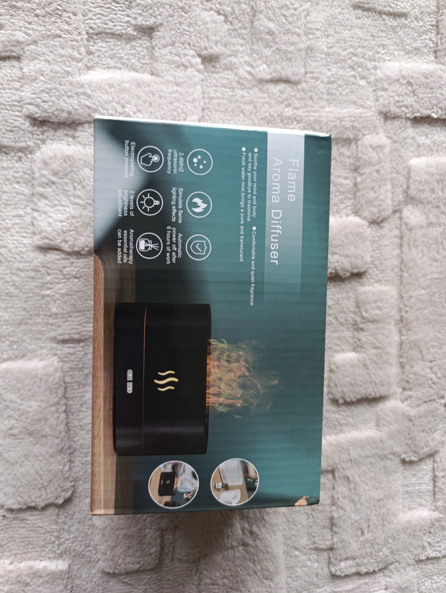 Difusor eléctrico con luz led con efecto de llama de 180ml. Podes colocarle agua, fragancias o unas gotitas de esencia base ACUOSAS ó ALCOHOL.