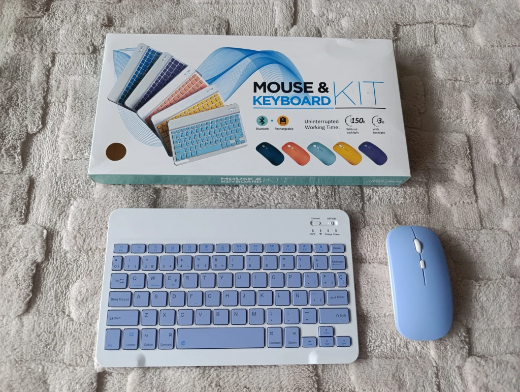 TECLADO + MOUSE BLUETOOTH, TAMAÑO MEDIANO, MIDE 25X15CM APROX PARA ANDROID, WINDOWS O IOS EL TECLADO ES RECARGABLE, INCLUYE CABLE, EL MOUSE FUNCIONA CON 2 PILAS AAA, YA INCLUIDAS AMBOS SON BLUETOOTH, ES DECIR QUE SOLO SE USA EN APARATOS QUE TENGAN RECEPTOR BLUETOOTH, SI ES SOLO USB TU PC NO TE SIRVE CARGA DE 2-3 HORAS, ALTA DURACION DE BATERIA NO TIENE LUZ NI RETROILUMINACION 10M DE DISTANCIA MAXIMA