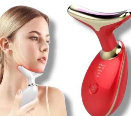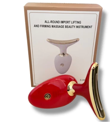 Dispositivo de uso facial con diseño ergonómico en forma de T. Proporciona vibración suave para masajes localizados. Funciona sin cables y se recarga por USB.